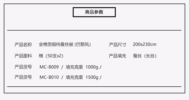 【包邮】全棉贡缎纯蚕丝被 (巴黎风)