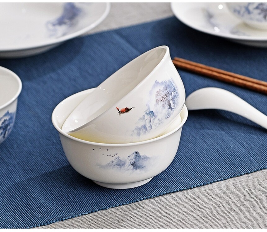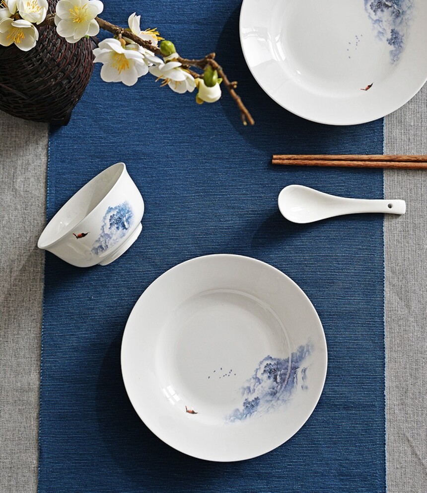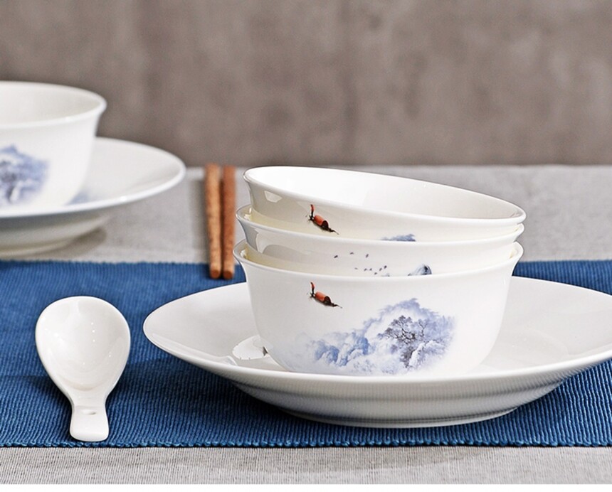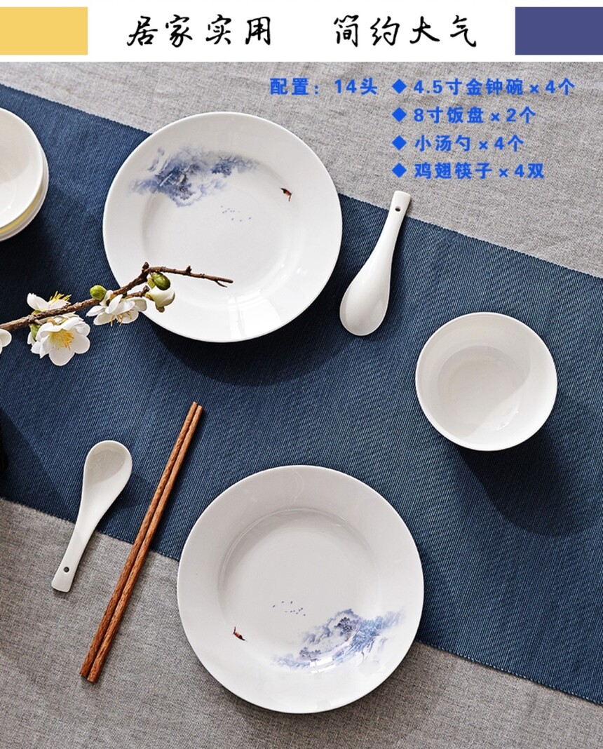 14 头4.5寸金钟碗 X 4个 8寸汤盘 X 2个 纯白 小汤勺 X 4个 鸡翅筷子X 4双