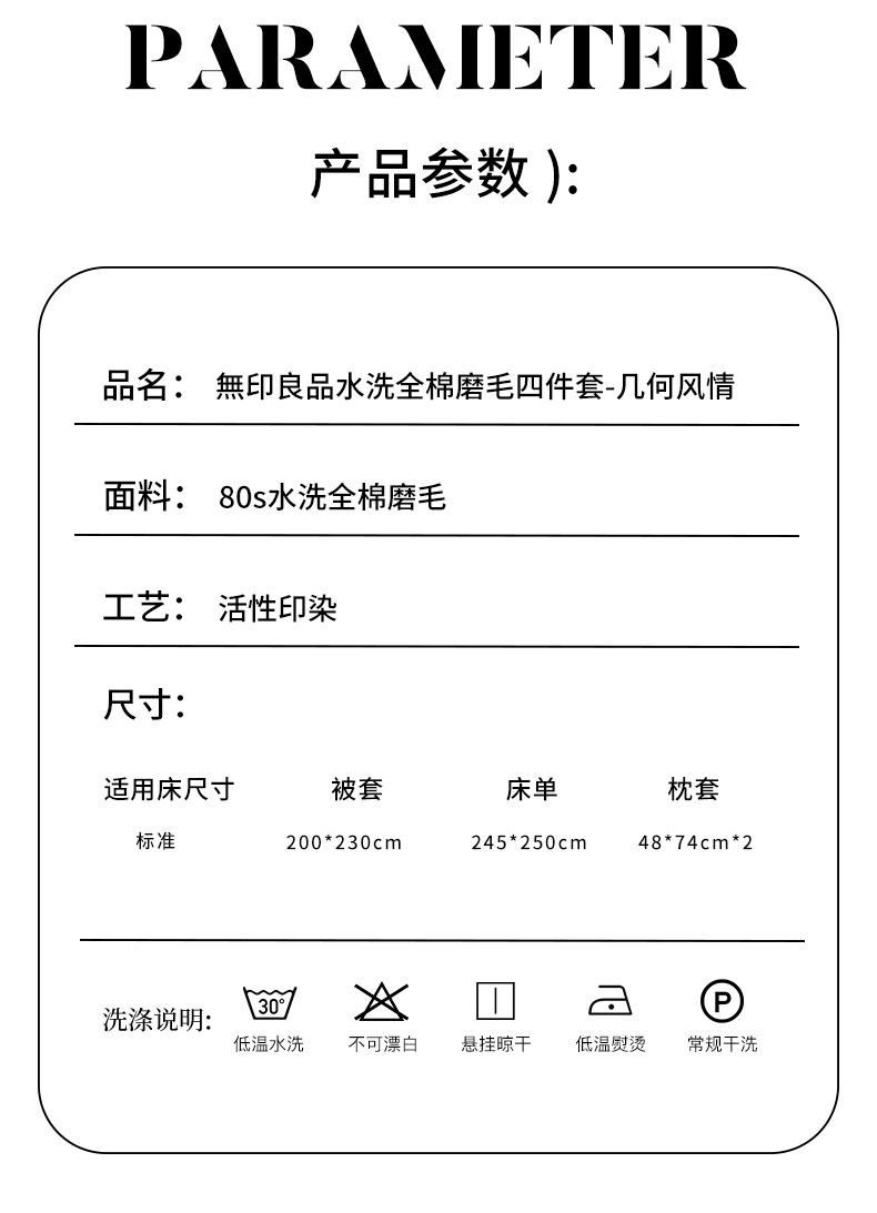 被套*1:200*230cm床单*1:245*250cm 枕套*2:48*74cm 80s水洗全棉磨毛
